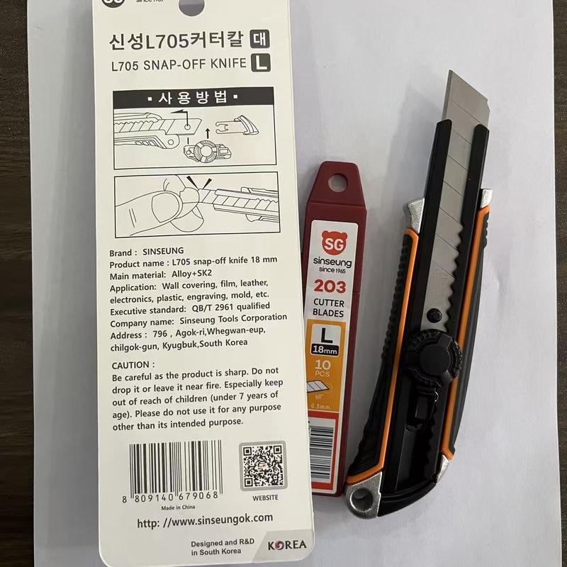 Each SINSEUNG L705 utility knife is packaged with care, with 10 pieces per inner box and 10 inner boxes per carton, totaling 100 pieces per carton. This packaging detail ensures that you have an ample supply of knives for your industrial cutting tasks.